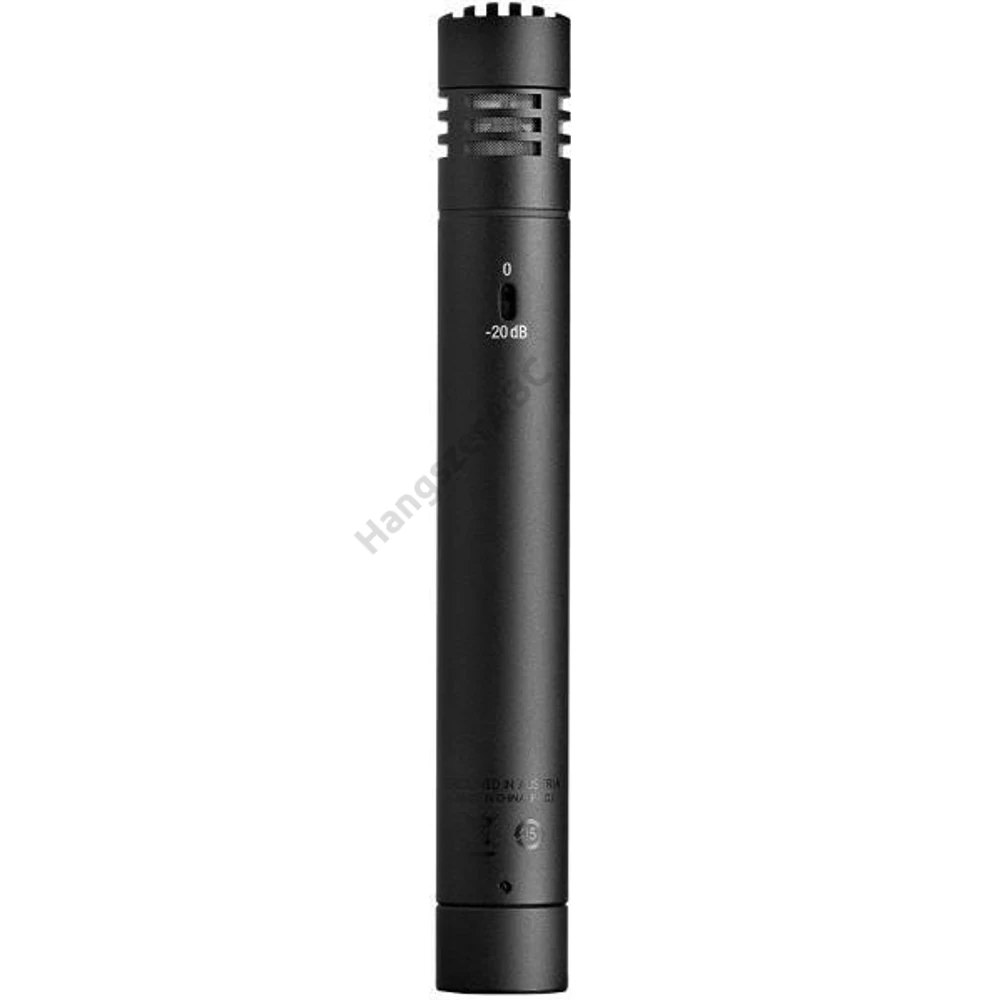 * Ajánlott overhead felvételhez, dob, akusztikus gitár és egyéb pengetősökhöz * Iránykarakterisztika: kardioid * Kapszula: 0.5" valódi kondenzátor * Frekvenciaátvitel: 20 Hz - 20.000 Hz * Érzékenység: 15 mV/Pa * Zajszintkiegyenlítés: 19 dB-A * Max. hangnyomás (0.5% torzítás mellett): 135dB, 155dB/Pad * Jel/Zaj arány: 75 dB-A * Kapcsolható Pad: -20 dB * Ajánlott töltési impedancia: ≥ 1000 Ω * Tápegység: 44 V - 52 V fantom * Csatlakozó: szimmetrikus XLR (papa) * Méret: átmérő: 22 mm, hossz: 160 mm * Súly: 130 g * Tartozék mikrofontartó állványadapter