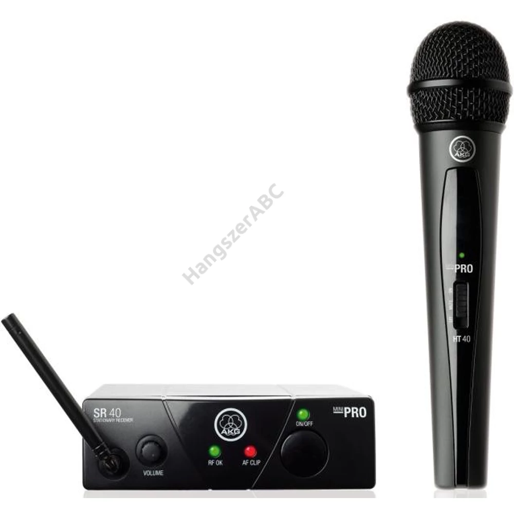 Frekvenciaátvitel: 40 - 20.000 Hz Jel/zaj arány: 110 dB-A Rádió érzékenység: -100 dBm Egy választható gyárilag beállitott frekvencia Hatótávolság légvonalban: 20 m FM moduláció Manuális adó szinkronizálás Kimeneti szint szabályzás, AF peak LED 1 külső fix antenna 6.3 mm-es asszimmetrikus jack kimenet Tápegység: 12 Volt Fekete fém ház Opcionális tartozékkal rackbe építhető Méret (w/h/d): 133 x 43 x 132 mm Tömeg: 574 g HT40 Mini kézi adóegység High Definition Audio Performance technológia Kardioid iránykarakterisztika Robusztus rúgóacél védőrács Zajtalan on/off/mute kapcsoló 30 órás üzemidő egy AA elemmel Frekvenciaátvitel: 40 - 20.000 Hz Jel/zaj arány: 110 dB-A Teljes harmonikus torzítás 1 kHz-nél: 0.8% Csúcs eltérés: 45 kHz Névleges eltérés: 15 kHz Rádió érzékenység: -100 dBm Rádió kimeneti erősítése (min/max): 10 mW Mikrofon fej verzió: P5 Egy gyárilag beállitott frekvencia Hatótávolság légvonalban: 20 m FM moduláció Manuális adó szinkronizálás Fekete plastik ház Méret (w/h): 51 x 230 mm Tömeg: 195 g