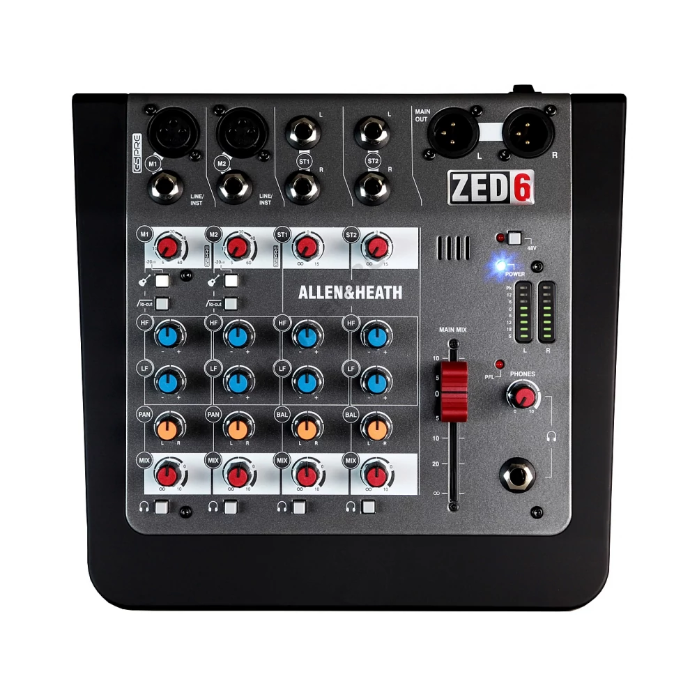 Kompakt 6 bemenetes analóg keverő. 2 mikrofon/vonalbemenet különálló XLR és TRS aljzatokkal 2 sztereó bemenet TRS aljzatokkal 2 nagyimpedanciás DI gitár bemenet, szükségtelenné teszi a DI boxok használatát Mélyvágó szűrő a nemkívánatos alacsony frekvenciás zaj megszüntetésére 2-sávos hangszínszabályzó 60 mm-es egyenletes mozgású féder a főkimeneten