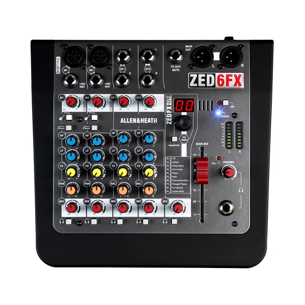 Kompakt 6 bemenetes analóg keverő effektprocesszorral. 2 mikrofon/vonalbemenet különálló XLR és TRS aljzatokkal 2 sztereó bemenet TRS aljzatokkal 2 nagyimpedanciás DI gitár bemenet, szükségtelenné teszi a DI boxok használatát Mélyvágó szűrő a nemkívánatos alacsony frekvenciás zaj megszüntetésére 2-sávos hangszínszabályzó 60 mm-es egyenletes mozgású féder a főkimeneten Beépített effektprocesszor tap tempo funkcióval