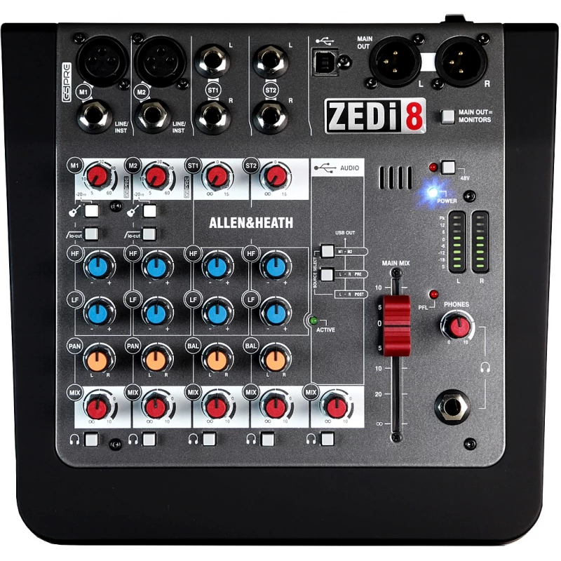 Allen&Heath ZEDi-8, kisformátumú keverő, 2 monó/2 sztereó csatorna, 24/96 USB 2X2