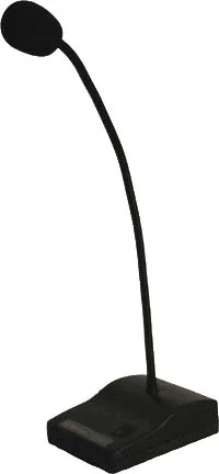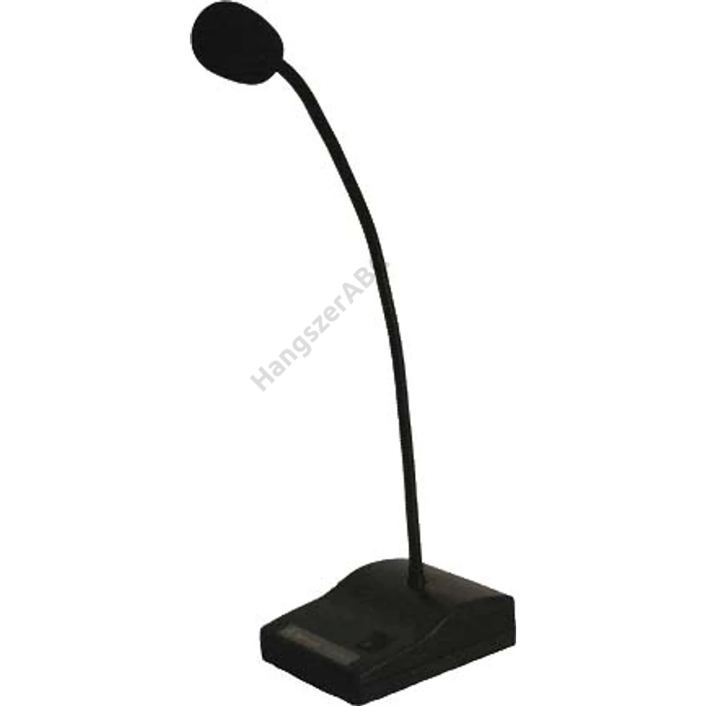 Két részből áll: egyik része a 450mm hosszú, flexibilis, irányított karakterisztikájú mikrofon, amely XLR csatlakozóval kapcsolható össze a másik részt képező talppal. A talp masszív, öntvény ház, amely rezgés mentesíti a mikrofont, elemtartóval és mikrofon ki-be kapcsolóval rendelkezik. A mikrofon és a talp fekete színű, a mikrofon bekapcsolt állapotát a piros színű világító gyűrű jelzi. Hanghűsége, nagy érzékenysége széles körben alkalmassá teszi a kommunikációs feladatok igényes megoldására. Tartozékok: 9V-os elem, szivacs, 5fm XLR-6,3 Jack kábel. 600 Ohm impedancia, 40Hz-16000Hz frekvenciamenet, 15mV/Pa érzékenység Figyelem: Kívánságra külső phantom tápra, egyedi igények szerint is applikáljuk!
