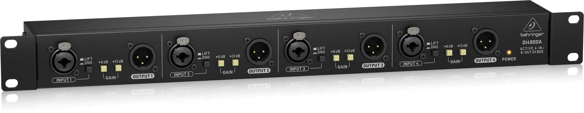 4 első osztályú DI csatorna egyetlen rack-térben. Egy bemenet/csatorna (XLR vagy ¼” TRS) és két XLR kimenet elöl és hátul az erősítőhöz vagy a monitorkonzolhoz való csatlakoztatáshoz, ami összesen 8 kimenetet tesz lehetővé.