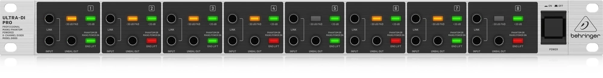 Professzionális hálózati / Phantom meghajtású 8 csatornás DI-Box.