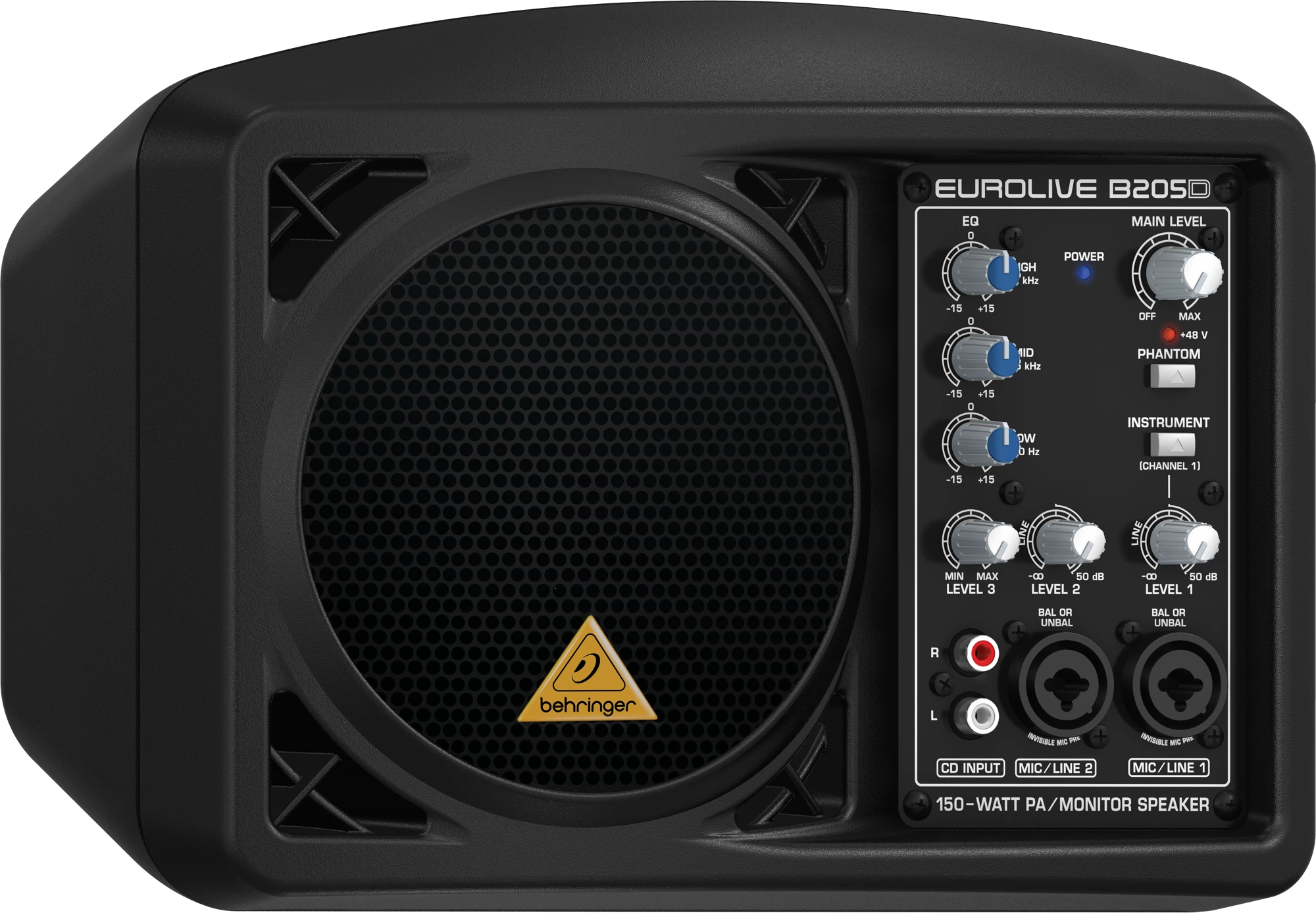 125 Wattos aktív PA/monitor hangfal rendszer, 5.25"-ös prémium neodímium driverrel, 3 csatornás keverővel