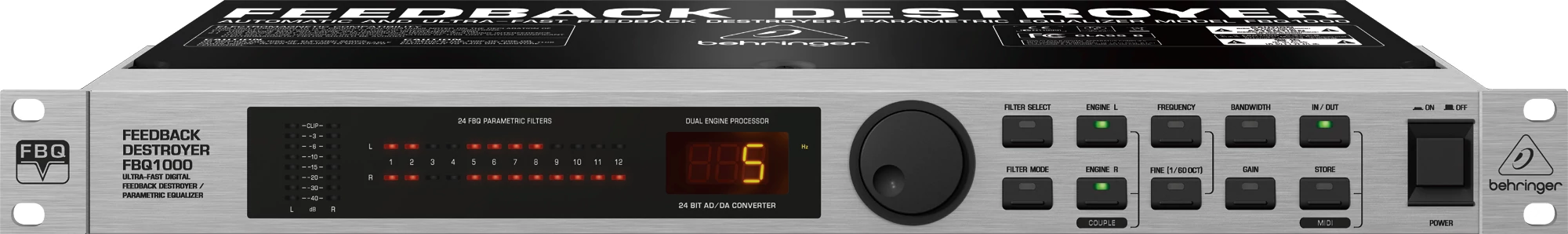 Kézi módban is állítható akár 24, teljesen parametrikus szűrő, külön frekvenciával, sávszélességgel, és Gainnel