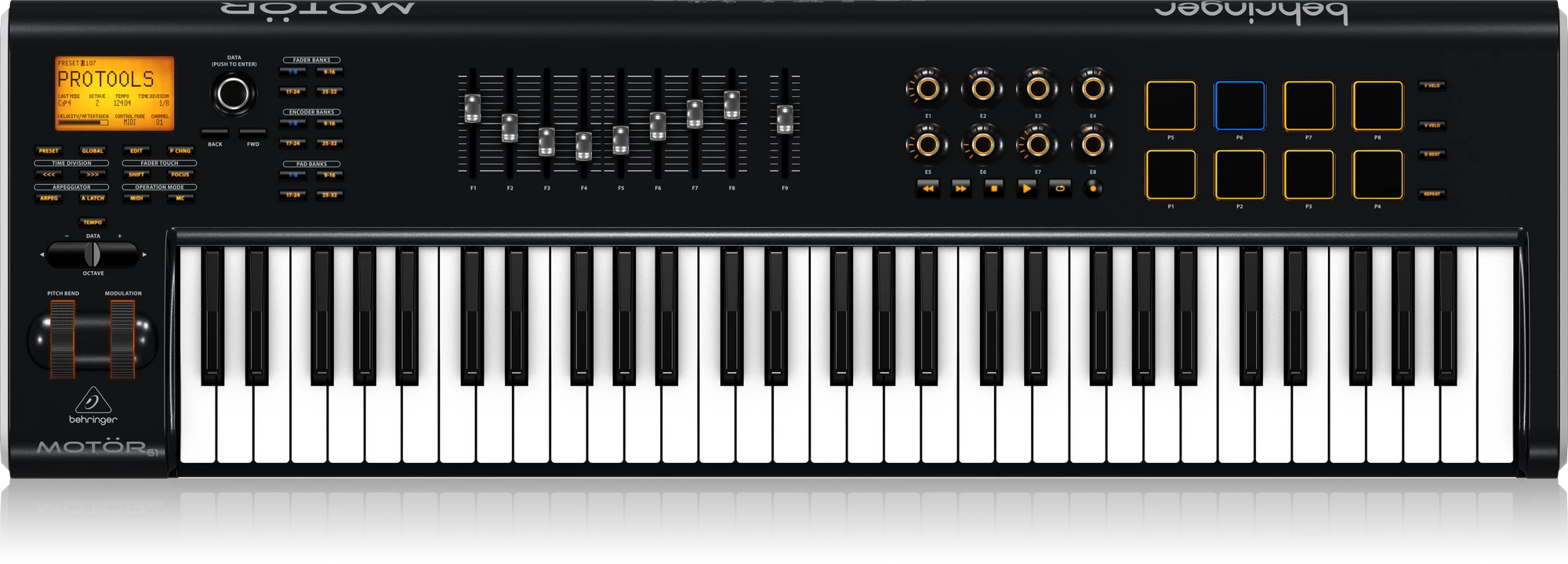 61 billentyűs USB MIDI billentyűzet, motorizált féderekkel és érintésérzékeny padekkel.