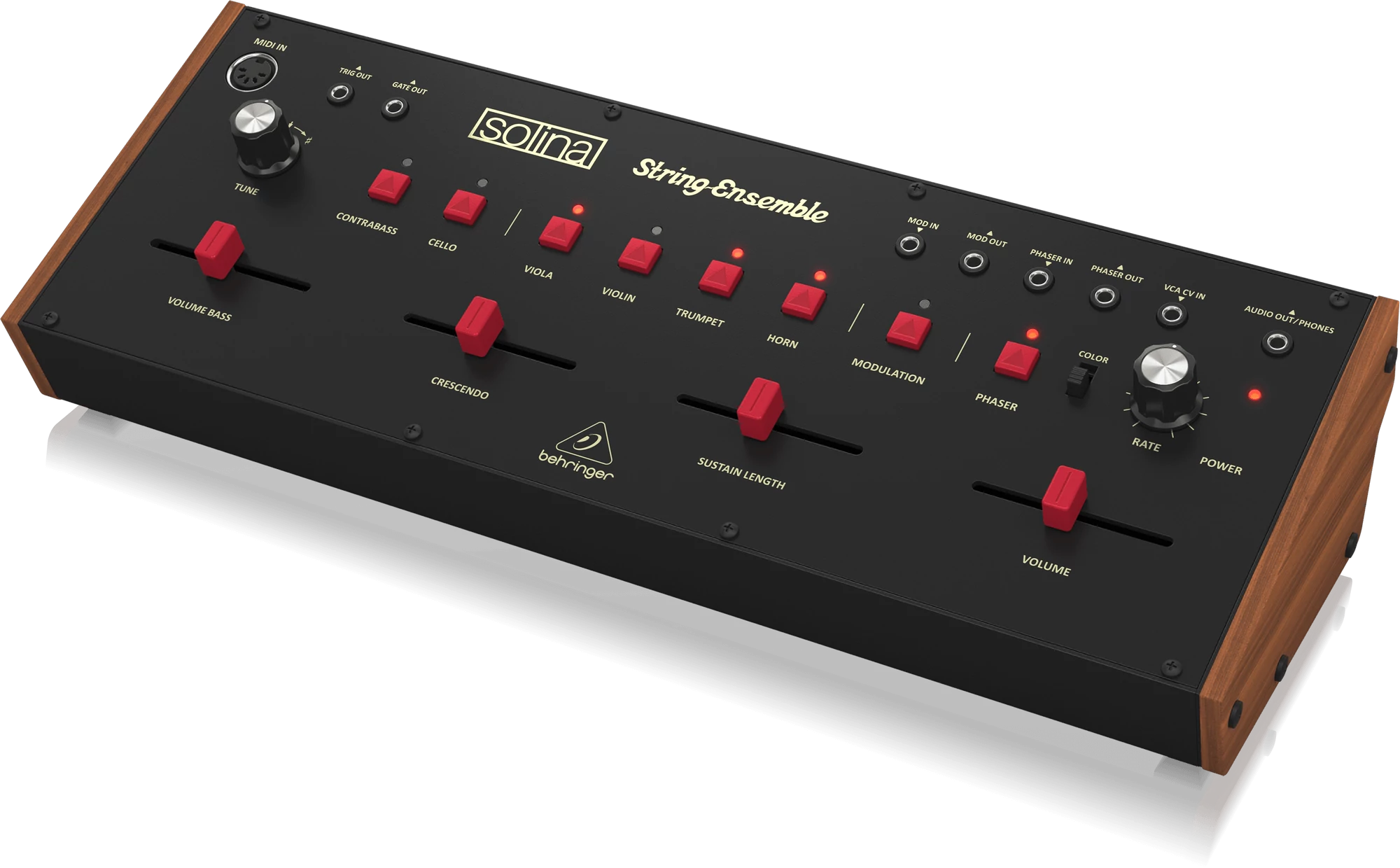Klasszikus analóg vonós szintetizátor 49 hangú polifóniával, BBD Chorus Ensemble, Vintage Phase Shifter és Eurorack formátumban