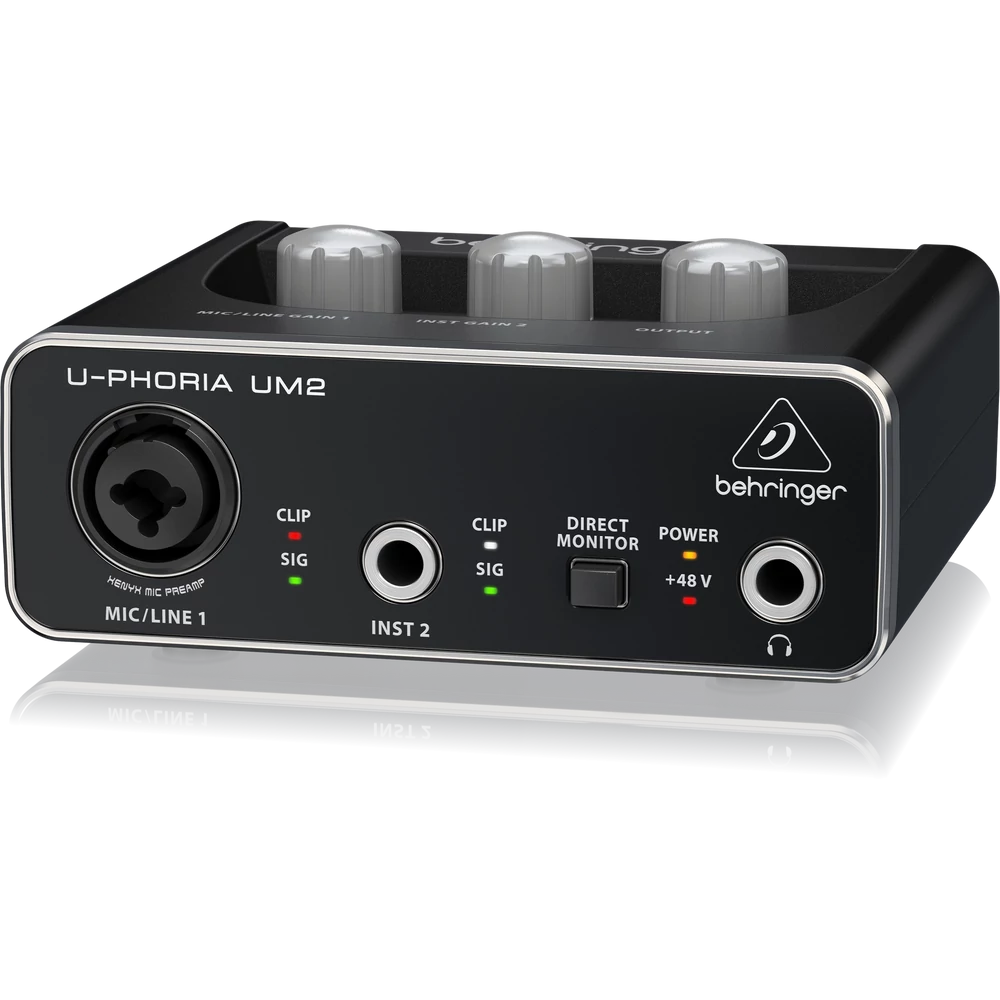 - 2x2 USB audio interfész mikrofonok és hangszerek rögzítésére