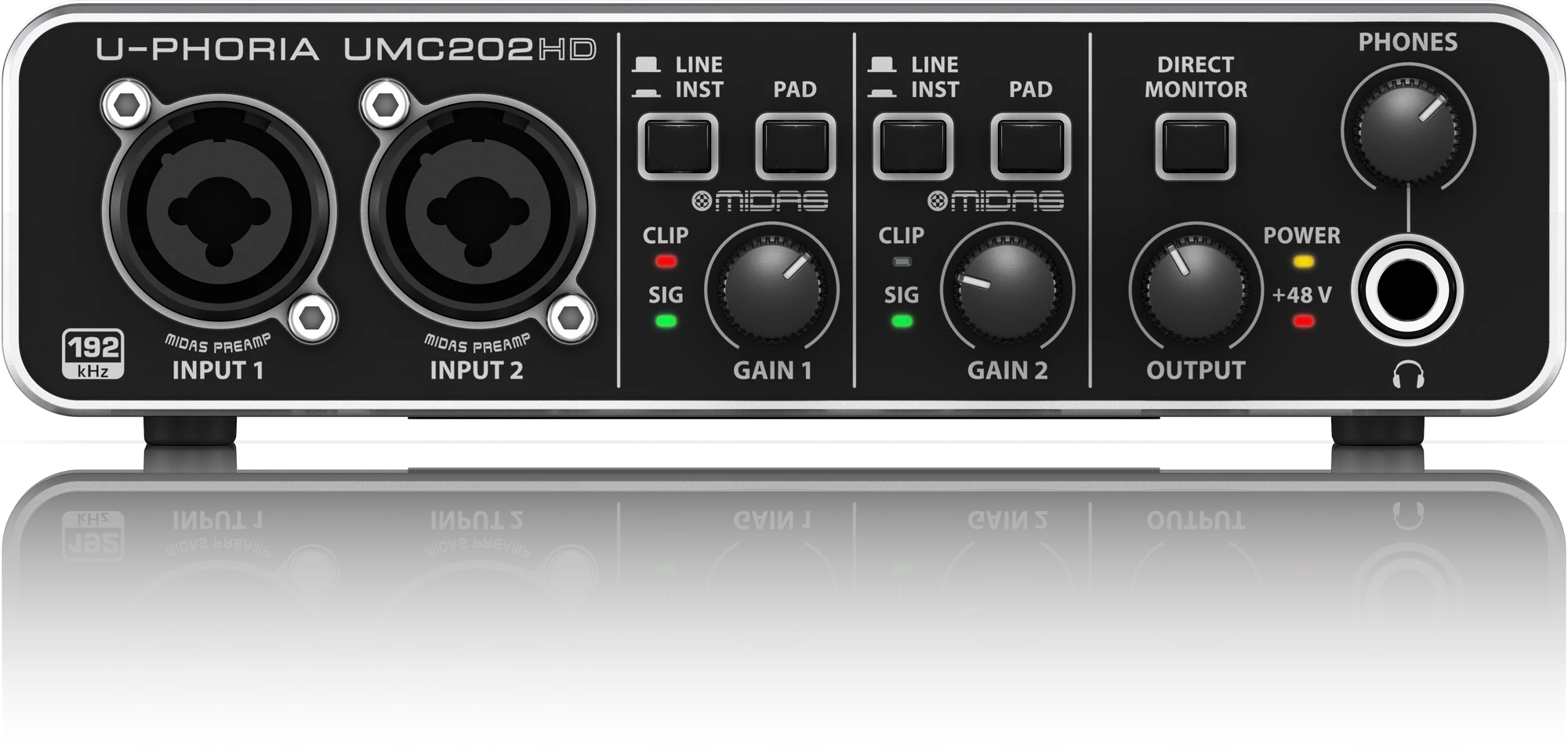 Ultra alacsony késleltetés, Midas márkájú előfok fantomtáppal (48V), felvétel közbeni késésmentes közvetlen monitorozás.