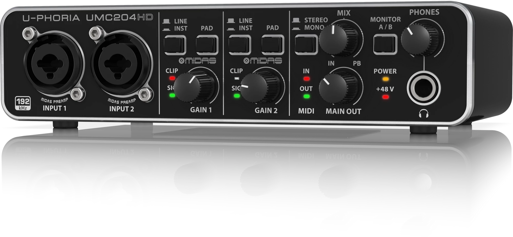 Bemeneti jel: 2 Midas preamp (XLR/TRS), USB (2.0 type-B), MIDI Kimeneti jel: 2db 6.3mm jack (L/R), 4db RCA (L/R,) 6.3mm stereo jack (fejhallgató, erősíthető), MIDI Mintavételi frekvenciák: 44.1/48/88.2/96/176.4/192 kHz Tápellátás: USB
