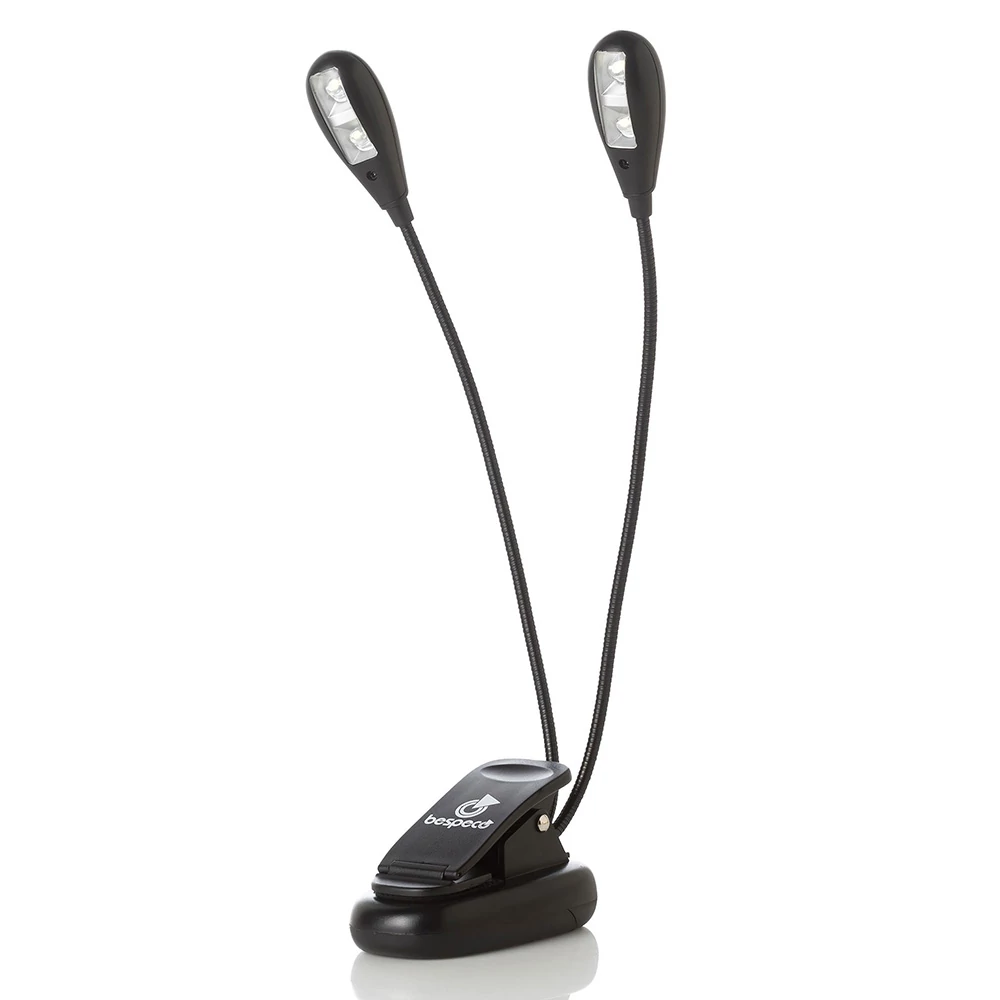 Két rugalmas száron külön-külön ki/be kapcsolható 2db LED lámpa, csíptethető talpazattal, gumis karcolásmentes tappancsokkal.