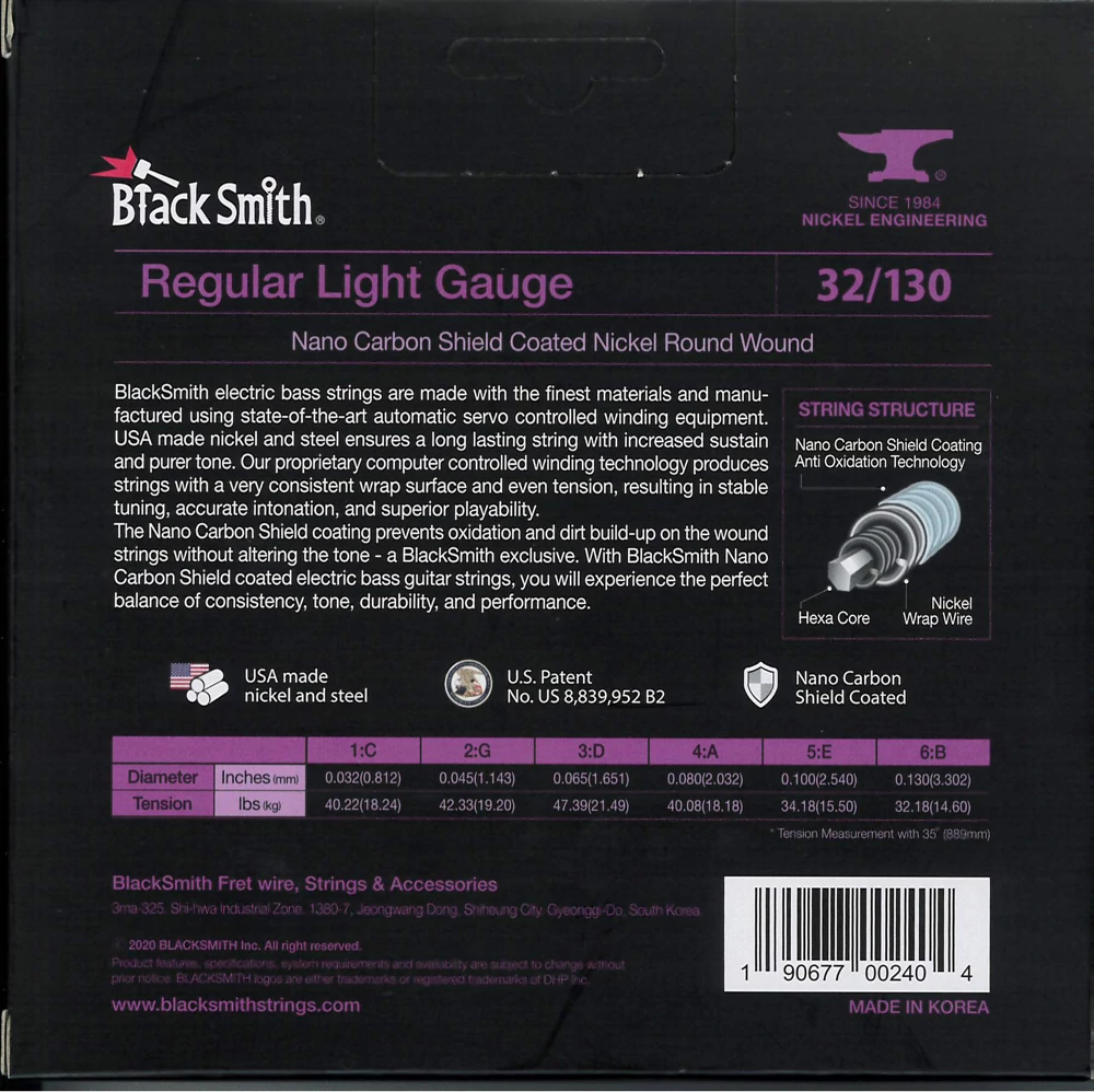 A BlackSmith elektromos basszus húrok a legkiválóbb alapanyagokból készülnek a legmodernebb tekercselő berendezés használatával. Az USA-ban gyártott nikkel és acél hosszú élettartamot és megnövelt hangkitartást biztosít. Számítógépvezérelt technológiával egyenletes tekercselést és húrnyomást kapunk, ami stabil hangolást, pontos intonációt és kiváló játszhatóságot eredményez.