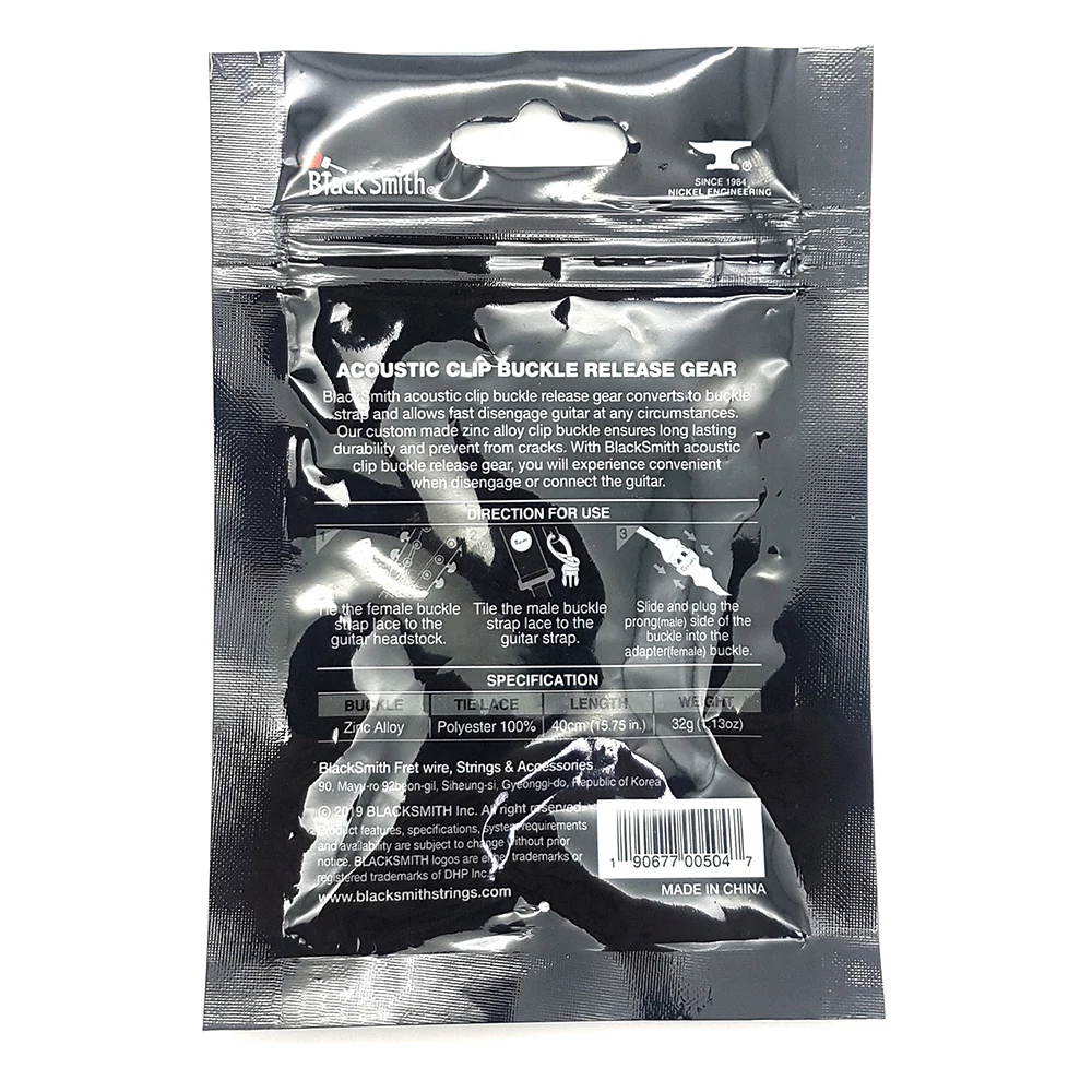 A BlackSmith csatos pántrögzítő a gitárhevedert alkalmassá teszi arra, hogy akusztikus gitár nyakára lehessen hurkolni. Egyedi cink ötvözetből készült csattal rendelkezik, amely tartós és szinte törhetetlen, segítségével pillanatok alatt fel- és lecsatolható a pánt.