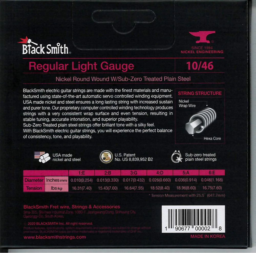 A BlackSmith elektromos gitár húrok a legkiválóbb alapanyagokból készülnek a legmodernebb tekercselő berendezés használatával. Az USA-ban gyártott nikkel és acél hosszú élettartamot és megnövelt hangkitartást biztosít. Számítógépvezérelt technológiával egyenletes tekercselést és húrnyomást kapunk, ami stabil hangolást, pontos intonációt és kiváló játszhatóságot eredményez. A fagyasztással kezelt acél húrok csilingelő hangzást és lágy tapintást adnak.