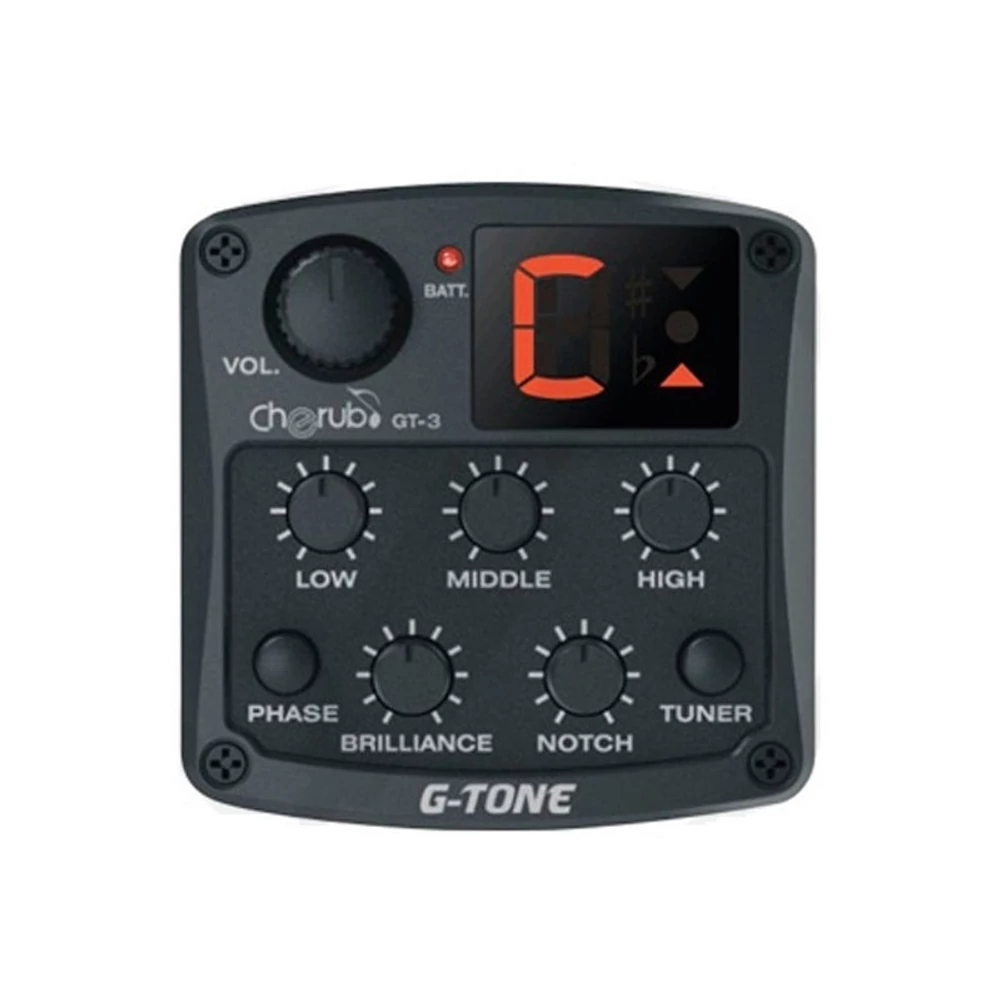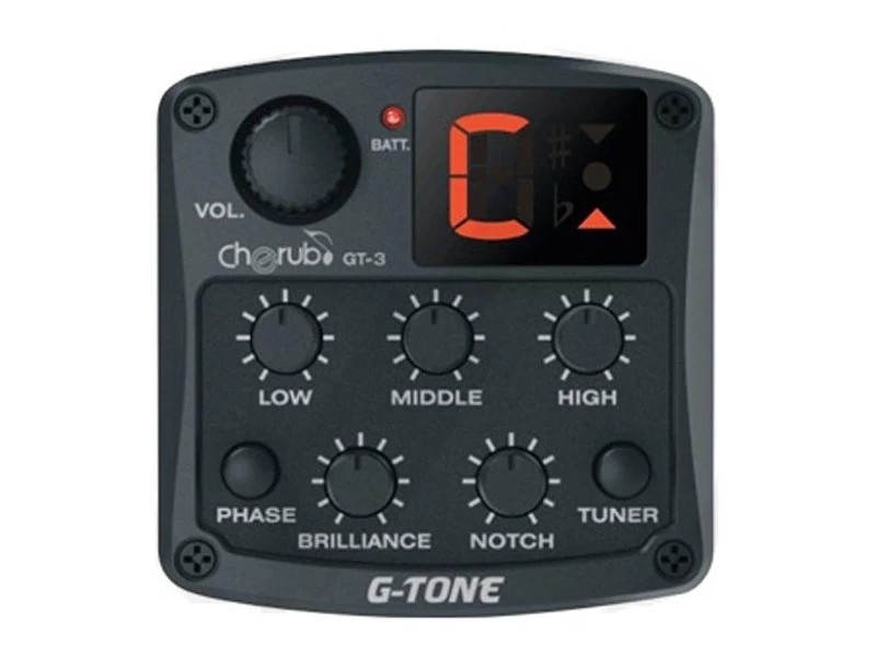 A Cherub GT-3 egy kiváló minőségű előerősítőt és hangolót tartalmaz, amely lehetővé teszi a gitár hangjának hangolását és erősítését. Az előerősítő háromsávos EQ-val rendelkezik, amely lehetővé teszi a magas, közép- és mélyfrekvenciák finomhangolását, így a játékosok könnyen megtalálhatják a kívánt hangot. A beépített hangoló pontos és gyors hangolást tesz lehetővé, amely a játékosoknak segít az optimális hangzás elérésében. Az egyszerű telepítési folyamatnak köszönhetően a Cherub GT-3 bármely akusztikus gitár típusba könnyedén beépíthető, így a játékosok élvezhetik a megnövelt hangerejű és finomhangolt hangzást bármilyen előadás során.