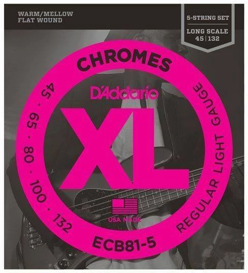 D'Addario ECB81-5 basszus gitár húrkészlet 5-húros, flat wound, húrkészlet 45-132 chrome, széria XL long scale