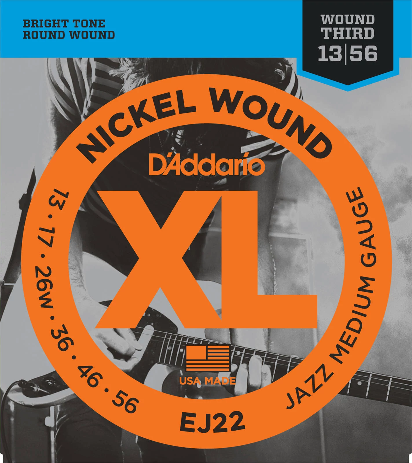 D'Addario EJ22 elektromos gitár húrkészlet 13-56 nikkel, széria XL jazz medium