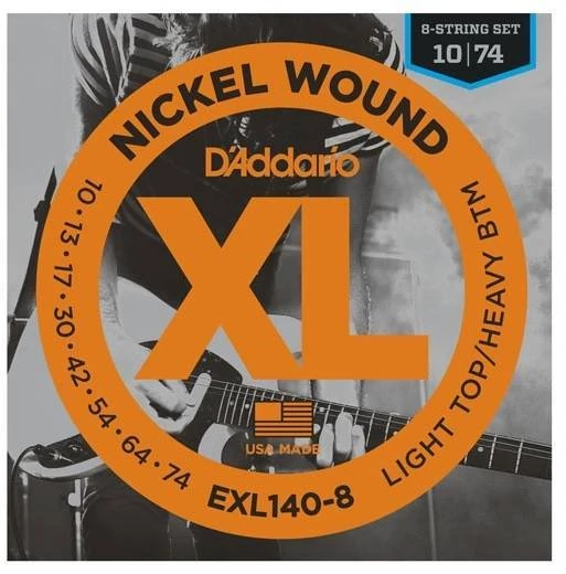 D'Addario EXL140-8 elektromos gitár húrkészlet, 8-húros 10-52 nikkel, széria XL lite top/heavy bottom