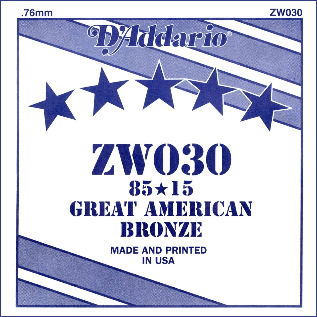 D'Addario ZW030 különálló akusztikus gitárhúr, 85/15 great american bronze, wound 030