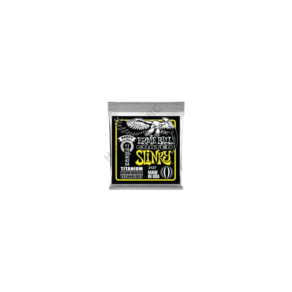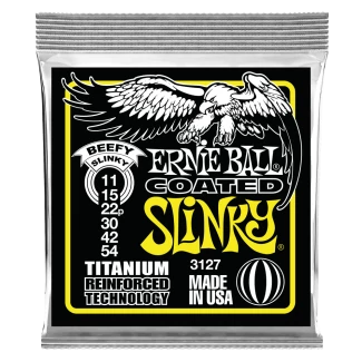 Az Ernie Ball Coated Slinky húrok kombinálják a legmodernebb fejlesztéseket a húriparban. Az összes sodrott húr mind kezelve van egy ultra vékony lakkréteggel ami megakadályozza a húrok oxidációját. Ezáltal ötször tovább tart az "új húr érzet" mint egy hagyományos bevonat nélküli húrnál. A sima (nem sodrott) húrok ötvözik a korrózióvédő bevonatot az RPS technológiával, viszont itt titán erősítéssel. A titánban rejlő erő megakadályozza a húrok szakadását, letekeredését és bizonyítottan tovább tartja a hangolást mint a hagyományos húrok. Az Ernie Ball Coated Slinky húrok teljesen olyan érzetet keltenek, mind játékérzetben mind pedig hangzásban mint a normál, bevonat nélküli húrok, viszont nagy hatásfokkal védik azokat annak érdekében, hogy sokáig tartson az a legendás hang és érzés amit a zenészek már 50 éve szeretnek. Átmérő .011 .015 .022 .030 .042 .054