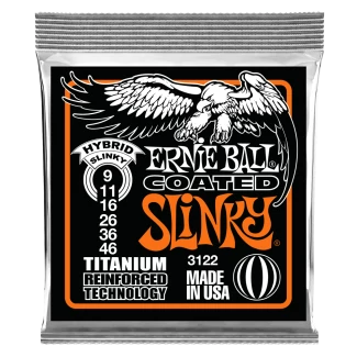 Az Ernie Ball Coated Slinky húrok kombinálják a legmodernebb fejlesztéseket a húriparban. Az összes sodrott húr mind kezelve van egy ultra vékony lakkréteggel ami megakadályozza a húrok oxidációját. Ezáltal ötször tovább tart az "új húr érzet" mint egy hagyományos bevonat nélküli húrnál. A sima (nem sodrott) húrok ötvözik a korrózióvédő bevonatot az RPS technológiával, viszont itt titán erősítéssel. A titánban rejlő erő megakadályozza a húrok szakadását, letekeredését és bizonyítottan tovább tartja a hangolást mint a hagyományos húrok. Az Ernie Ball Coated Slinky húrok teljesen olyan érzetet keltenek, mind játékérzetben mind pedig hangzásban mint a normál, bevonat nélküli húrok, viszont nagy hatásfokkal védik azokat annak érdekében, hogy sokáig tartson az a legendás hang és érzés amit a zenészek már 50 éve szeretnek. Átmérő .009 .011 .016 .026 .036 .046
