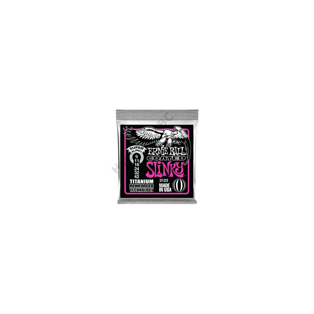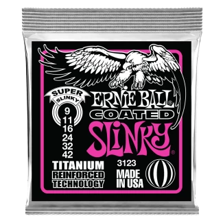 Az Ernie Ball Coated Slinky húrok kombinálják a legmodernebb fejlesztéseket a húriparban. Az összes sodrott húr mind kezelve van egy ultra vékony lakkréteggel ami megakadályozza a húrok oxidációját. Ezáltal ötször tovább tart az "új húr érzet" mint egy hagyományos bevonat nélküli húrnál. A sima (nem sodrott) húrok ötvözik a korrózióvédő bevonatot az RPS technológiával, viszont itt titán erősítéssel. A titánban rejlő erő megakadályozza a húrok szakadását, letekeredését és bizonyítottan tovább tartja a hangolást mint a hagyományos húrok. Az Ernie Ball Coated Slinky húrok teljesen olyan érzetet keltenek, mind játékérzetben mind pedig hangzásban mint a normál, bevonat nélküli húrok, viszont nagy hatásfokkal védik azokat annak érdekében, hogy sokáig tartson az a legendás hang és érzés amit a zenészek már 50 éve szeretnek. Átmérő .009 .011 .016 .024w .032 .042