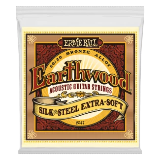 Csakúgy mint a sima Earthwood Bronze húroknál itt is 80/20 as bronze ötvözetből készül a külső tekert szál, de a vezetődrót és a tekercselés közé egy vékony selyemréteg kerül. A selyem még melegebb tónust ad a hangnak és kényelmesebb játékérzetet biztosít miközben csökkenti az ujjak keltette zajt. Húrok átmérője .010 .014 .020w .028 .040 .050
