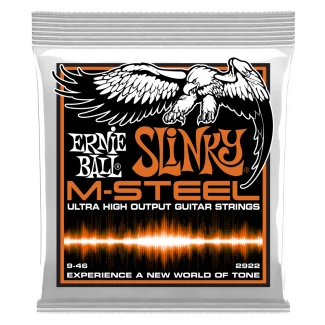 Az M-Steel rövidítés a Margaging acélt hivatott jelezni mely egy úgynevezett "szuperötvözet". Ezt a jellemzően az űrhajózásban és hadiparban használt anyagot használjuk az M-Steel húrok hatszögletű vezetőszáljának elkészítésére, melyre egy megnövelt kobalttartalmú szál van sodorva. Ezek eredményeképp egy gazdagabb, teltebb hangzást értünk el erőteljes mélytartománnyal. A magas (vékony) húrok esetében egy speciálisan hőkezelt acéladalékot használunk a maximális élettartam eléréséért. Emellett az RPS technológia továbbfejlesztett változata biztosítja számunkra, hogy a húrok ne szakadjanak, hangolódjanak.A valaha gyártott leghangosabb, leggyorsabban reagáló húrok elképesztően széles hangtartománnyal és maximális komfortérzettel.A Hybrid Slinky tökéletes választás, ha a Super és a Regular Slinky-k adta lehetőségeket szeretnéd kombinálni. Erőteljes riffek és sikító szólók.A húrok átmérője: .009 .011 .016 .026 .036 .046