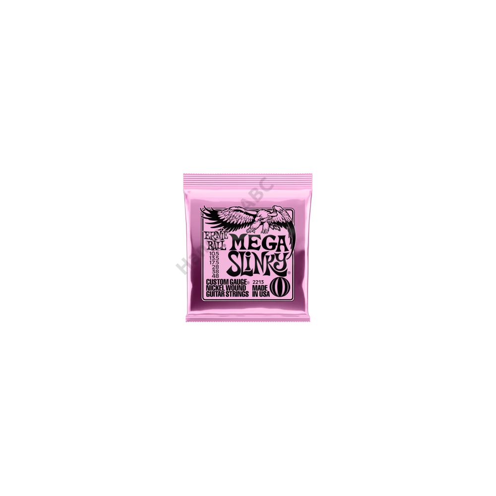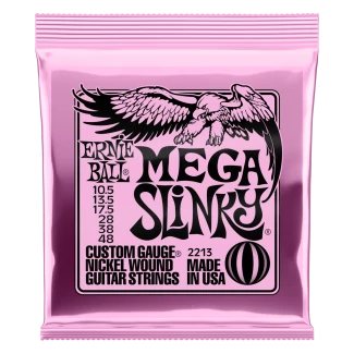 Az Ernie Ball Mega Slinky húrok az Ultra Slinky és Power Slinky húrok között képeznek egy lépcsőt. Ezek a húrok a precíz gyártásnak köszönhetően tökéletes összetételűek, optimális játékérzetet biztosítanak és hosszú élettartamúak. A Mega Slinky sodort húrjai nickel bevonatú acélhúrok melyek egy hatszögletű acél vezetőszál köré vannak tekerve. A sima húrok vékony bevonatú karbon acélból készülnek, ezzel nyújtva a tökéletesen kiegyensúlyozott hangot a gitárodnak. A húrok átmérője .00105 .0135 .0175 .028 .038 .048