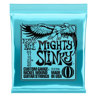 Az Ernie Ball Mighty Slinky húrok az Extra Slinky és Super Slinky húrok között képeznek egy lépcsőt, ezzel biztosítva a könnyű, gyors játékérzést egyenletesen mind a hat húron.A húrok átmérője .085 .011 .015 .022w .030 .040