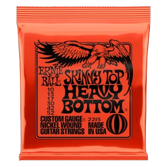 Az Ernie Ball Skinny Top Heavy Bottom Slinky húrok a tökéletes hibrid húrok azoknak a gitárosoknak akik szeretik a vastag mély hangokat, de nem szeretnék feladni a vékonyabb húrok nyújtotta kényelmet szólózáskor. Ezek a húrok a precíz gyártásnak köszönhetően tökéletes összetételűek, optimális játékérzetet nyújtanak és hosszú az élettartamuk. A sodort húrjok nickel bevonatú acélhúrok melyek egy hatszögletű acél vezetőszál köré vannak tekerve. A sima húrok vékony bevonatú karbon acélból készülnek, ezzel nyújtva a tökéletesen kiegyensúlyozott hangot a gitárodnak. A húrok átmérője .010 .013 .017 .030 .042 .052