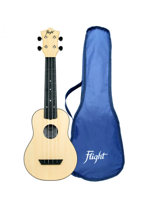 Flight TUS-35 utazó ukulele / NAT szoprán ukulele Szín: Natúr Fedlap: Basswood Hátlap: PVC Test anyaga: Teljes tömör fa Nyak: PVC Fogólap: PVC Szerelék felület: Króm Húrok száma: 4
