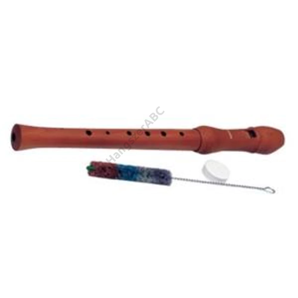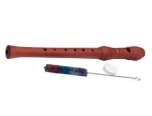 Germán fogású szoprán furulya, körtefából, tisztító kefével, dobozban.