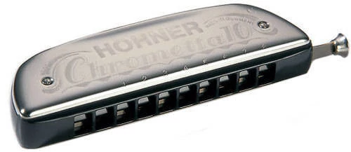 szájharmonika: Chrometta kromatikus szájharmonika, rozsdamentes acél fedőlemez, fekete műanyag test (fésű), 40 darab 1.05 mm réz lamella, 10 hanglyuk, 14 cm hosszúság, hangnem: C, robusztus felépítés, kiváló ár / érték arány