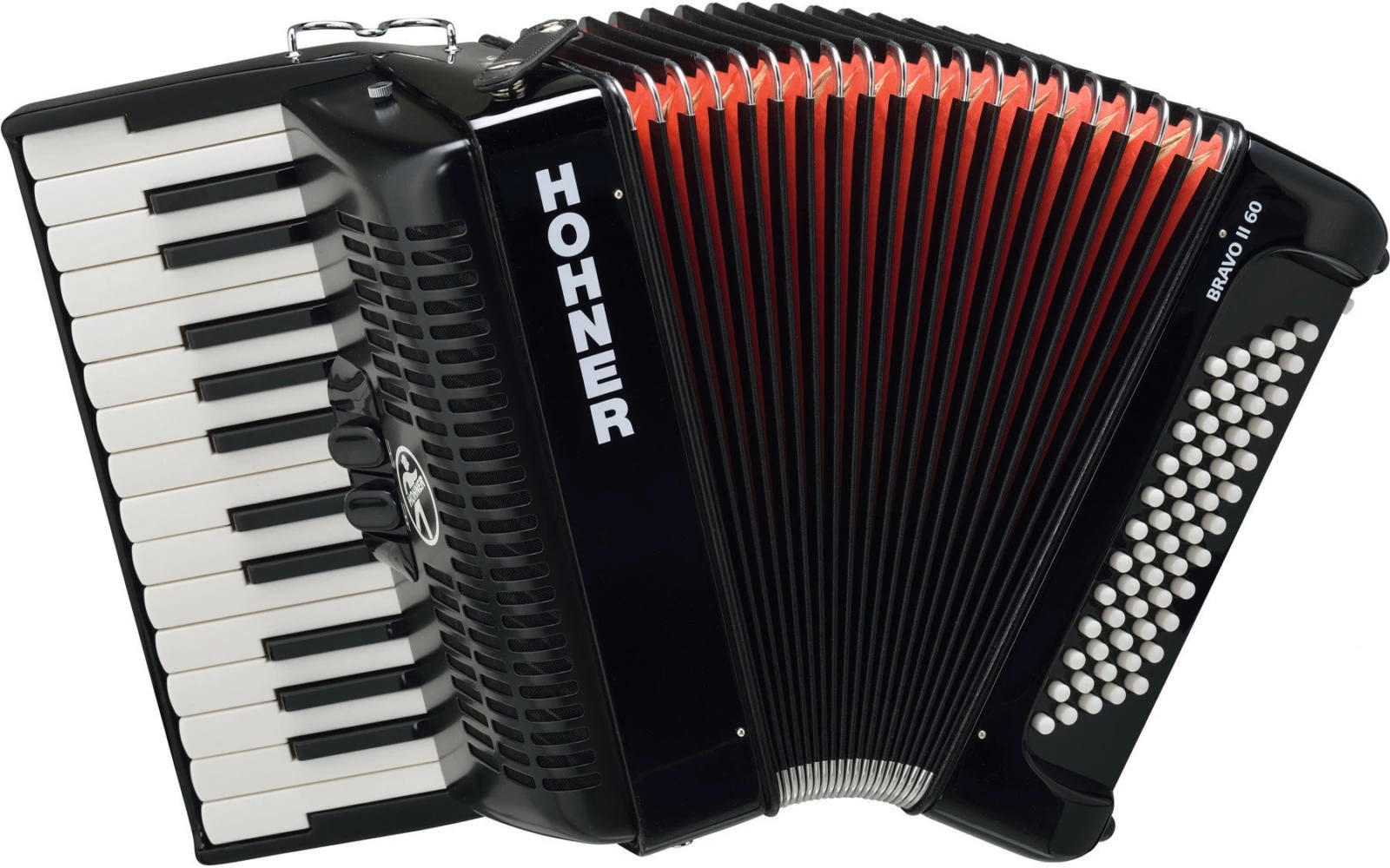 Hohner Bravo II 60 Black Tangóharmonika, Bravo széria, kezdő és középhaladó zenészeknek, zenei rugalmasságot, gazdag hangzást és kellemes hangulatot kölcsönöz a T-mechanizmussal ellátot billentyűzetnek köszönhetően. 26 kromatikus billentyű 60 basszusgomb, két regiszter, négy szabványos basszus hangszín. A tartomány a legalacsonyabb B hangtól a legmagasabb C hangig terjed, a hangszer kompakt méretű: 31x18,5 cm, súlya mindössze 5,1 kg. Tartozék heveder és hordtáska. Szín: fekete. Model Bravo II 60 Reed plate quality standard number of notes 26 Class chromatic Piano keys 26 lowest note B highest note C Voices 2 Tone colors 2 Number of registers 2 Standard basses 60 Standard bass voices 4 Size (height x width) 31 cm x 18,5 cm weight 5,1 kg Straps straps Case Gig Bag