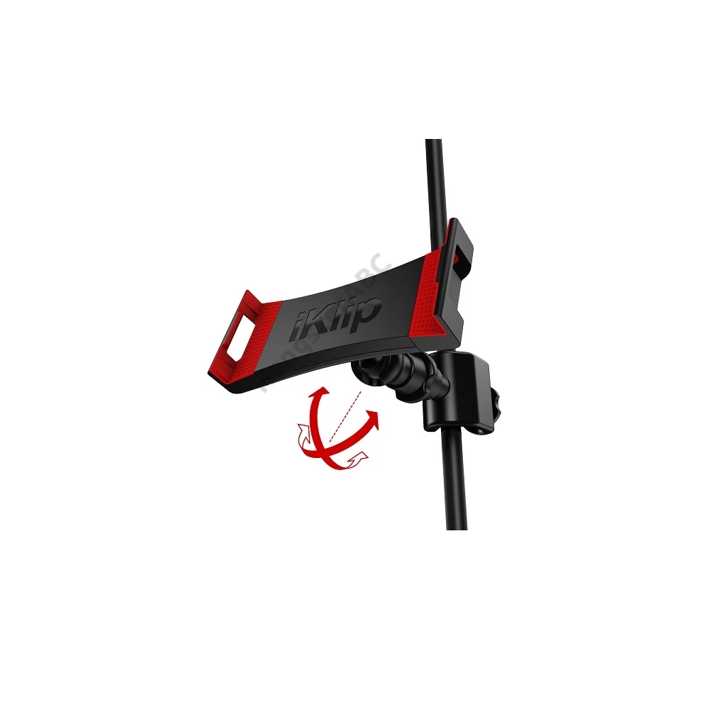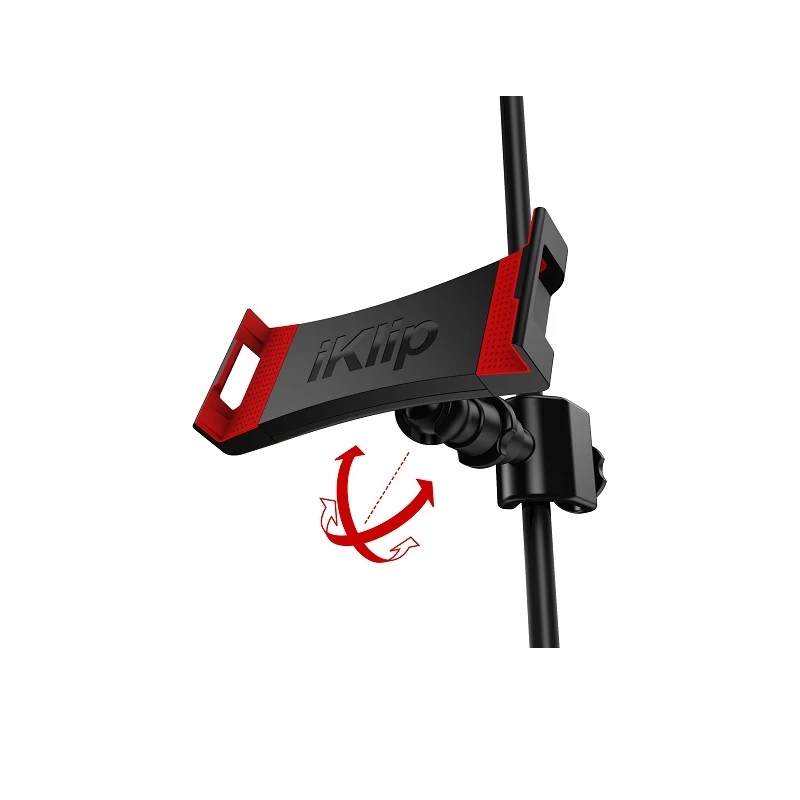 IK Multimedia iKlip3 univerzális tablet tartója könnyedén rögzíthető bármilyen mikrofonállványra, vagy hangszerállványra. Bármilyen 7 "- 12,9" méretű tablet rögzíthető benne, és a tablet akár tokkal együtt is beletehető. Beállítható horizontális és vertikális nézetben is, így a tablet kényelmesen és tökéletesen használható kották, dalszövegek, akkordok és különböző zenei alkalmazások figyelemmel követéséhez és használatához. A tablet tartó lágy tapintású gumipárnácskái biztonságosan megtartják a tabletet. Speciális gömbcsuklós mozgathatósága segítségével a kívánt nézőszög könnyedén beállítható. Természetesen a tablet minden gombja és csatlakozó aljzata szabadon hozzáférhető, használható. Robusztus, hőre lágyuló műanyagból készült a teljes megbízhatóság érdekében. Olaszországban tervezett termék.
