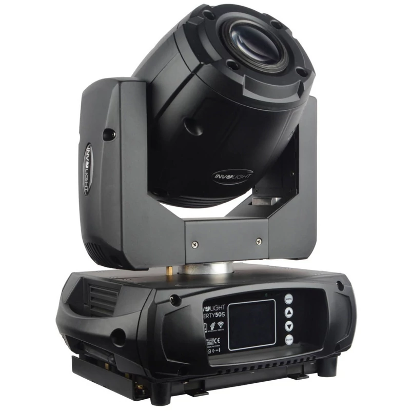 W-DMX-es, akkumulátoros (nem tartozék) 50W-os forgófejes robotlámpa.