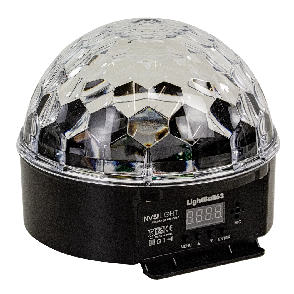 - 6 x3W (RGB) LED - automata mód, hangvezérlés, master-slave, DMX (5ch) - 140° nyitási szög - méret: 175 x 175 x 150mm - súly: 0,6kg
