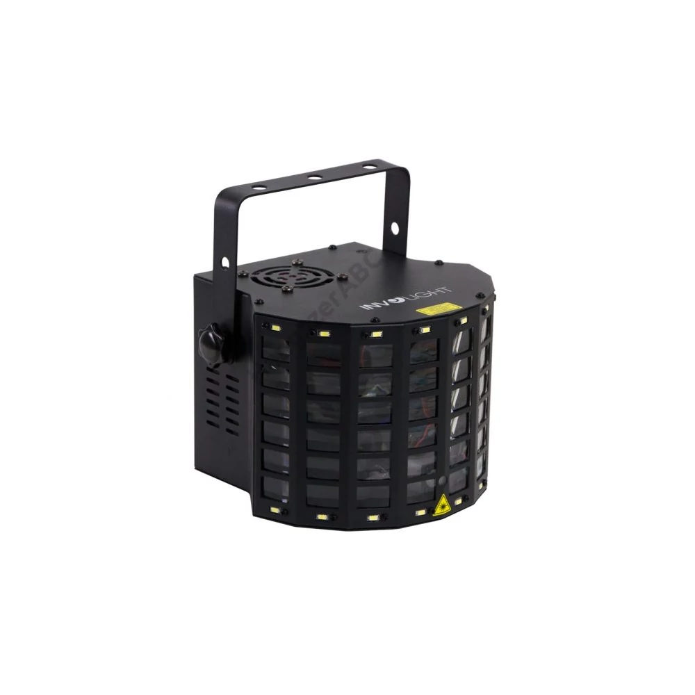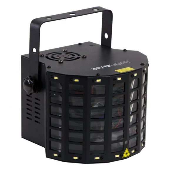 - Szín: RGBW - STROB: 16db 0,5W-os LED - LED: 4db 3W-os LED - DMX mód: 4 csatornás üzemmód - Lézer: Piros (100mW) és Zöld (50mW) - Vezérlés: Autómata, Sound, Master/Slave, DMX - Áramfelvétel: 20W - Méretek: 260x235x180mm - Súly: 2,18kg