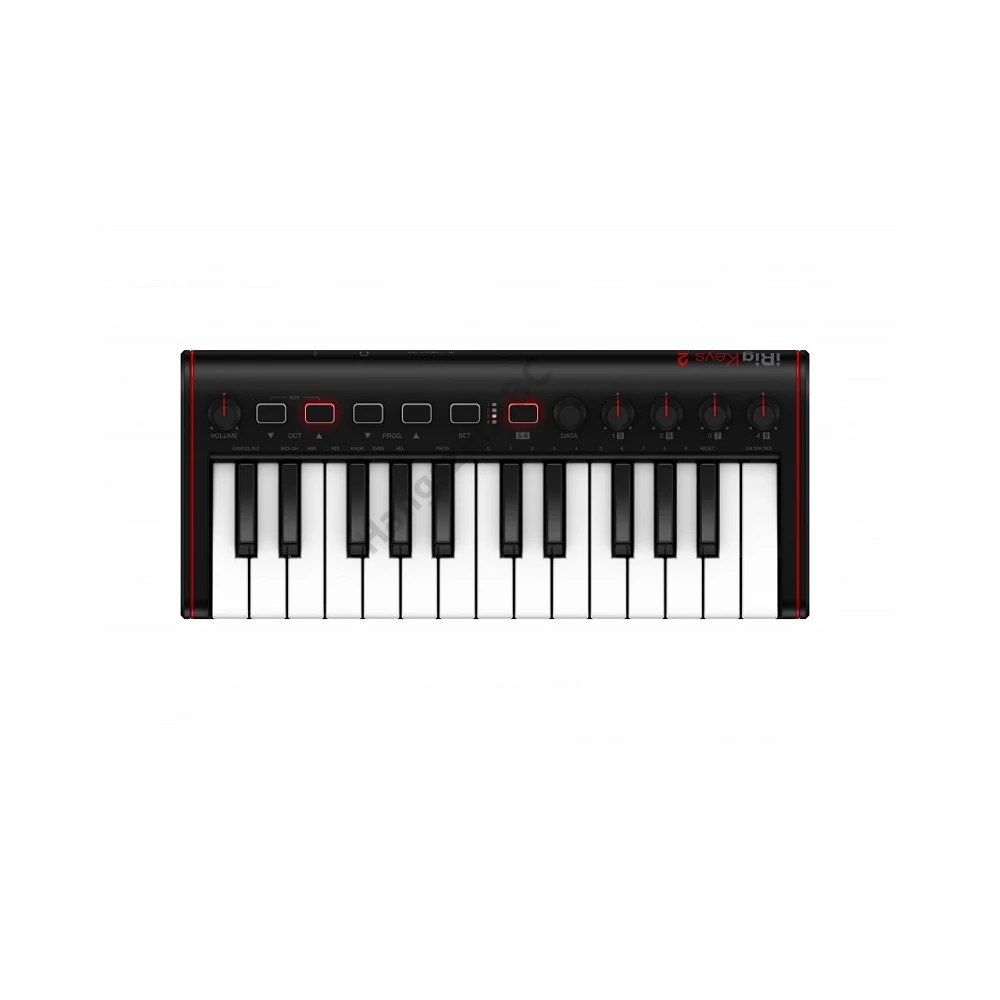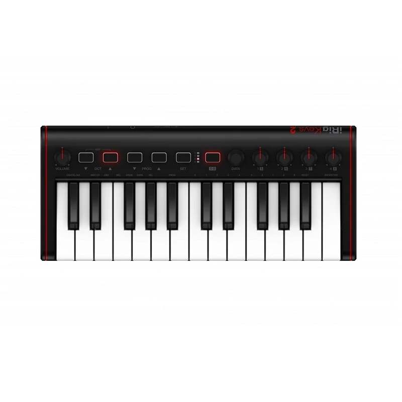 IRIG Keys 2 MINI 2 oktáv + 1 billentyűs kivitele tökéletes egyensúlyt biztosít a hordozhatóság és a használhatóság között. A készüléken háttérvilágítással rendelkező puha érintésű hangerő/adatfolyam tekerőgomb, oktávváltó nyomógombok találhatók, amelyekkel az alap MIDI funkciókat már a billentyűzeten szabályozhatjuk.