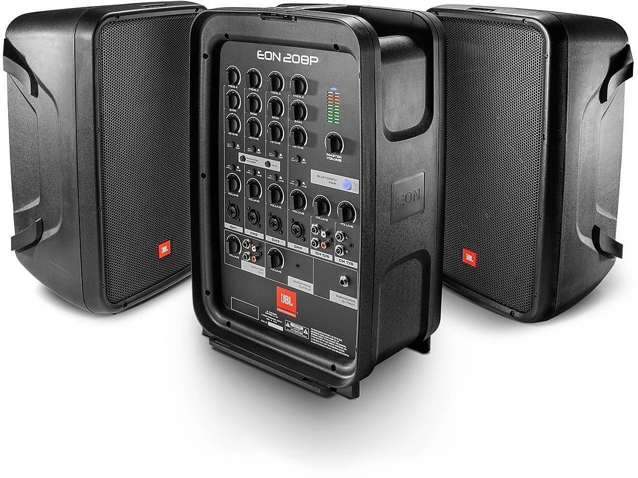 Teljes körű PA rendszer széles sávú hangszórókkal, 8 csatornás keverővel és Bluetooth vezeték nélküli csatlakozással. Emellett az EON208P egy nagyon kompakt, aktatáska kialakítású, ezért könnyen hordozható kis koncertekre, találkozókra, prezentációkra vagy egyéb eseményekre. A lecsatolható 8 csatornás keverő 8 csatornát kínál: 4 mono mikrofon / vonalbemenettel és 2 sztereó, lehetővé téve az összes típusú hangszerek és mikrofonok csatlakoztatását. 8 '' JBL mélynypmó és 1'' magassugárzó, a 300W teljesítmény (2x 150W) elegendő még igényesebb alkalmazásokhoz is. Az alacsony súlya és a kényelmes fogantyúnak köszönhetően a rendszer egy kézzel is szállítható. A készülék mérete 575 x 775 x 400 mm, tömege 17,6 kg.