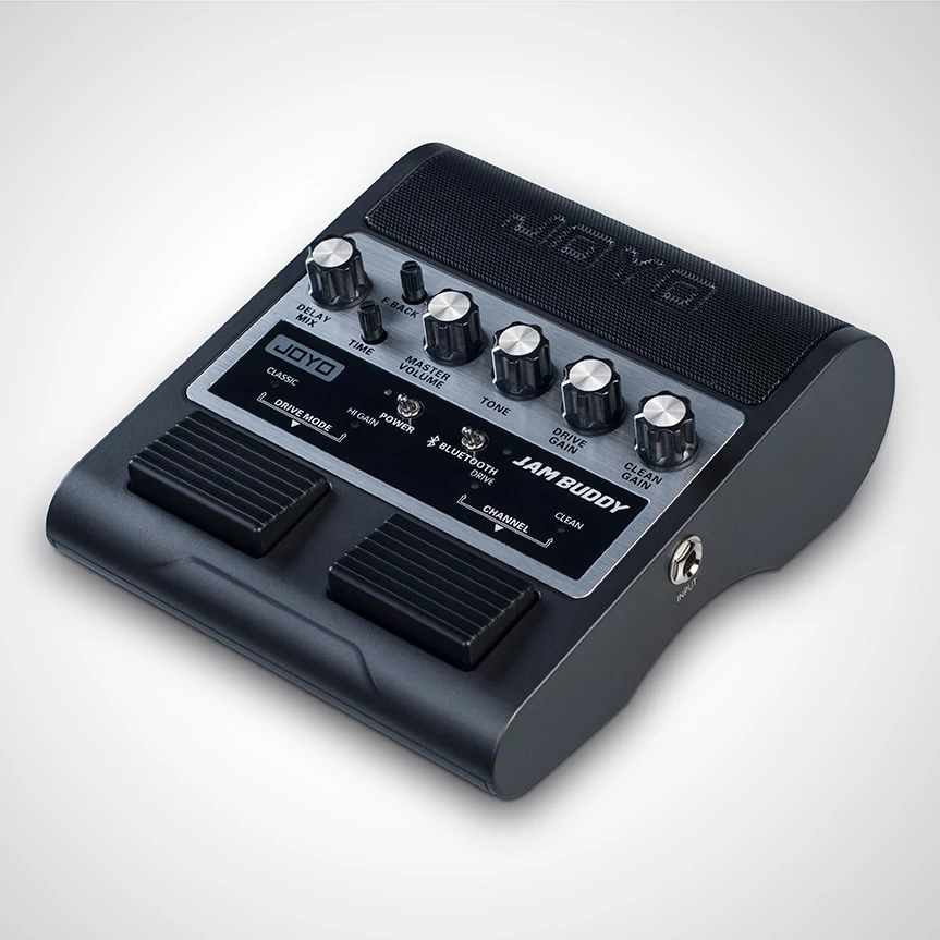 Nagyon praktikus gyakorló eszköz: kétcsatornás erősítő szimulátor beépített hangszórókkal, visszhanggal és Bluetooth csatlakozási lehetőséggel a saját backing track-ek megszólaltatására. Mindez pedál kivitelben, lábkapcsolókkal vezérelhető csatornaváltással és gain fokozattal. A beépített tölthető akku 3 óra használatot biztosít.