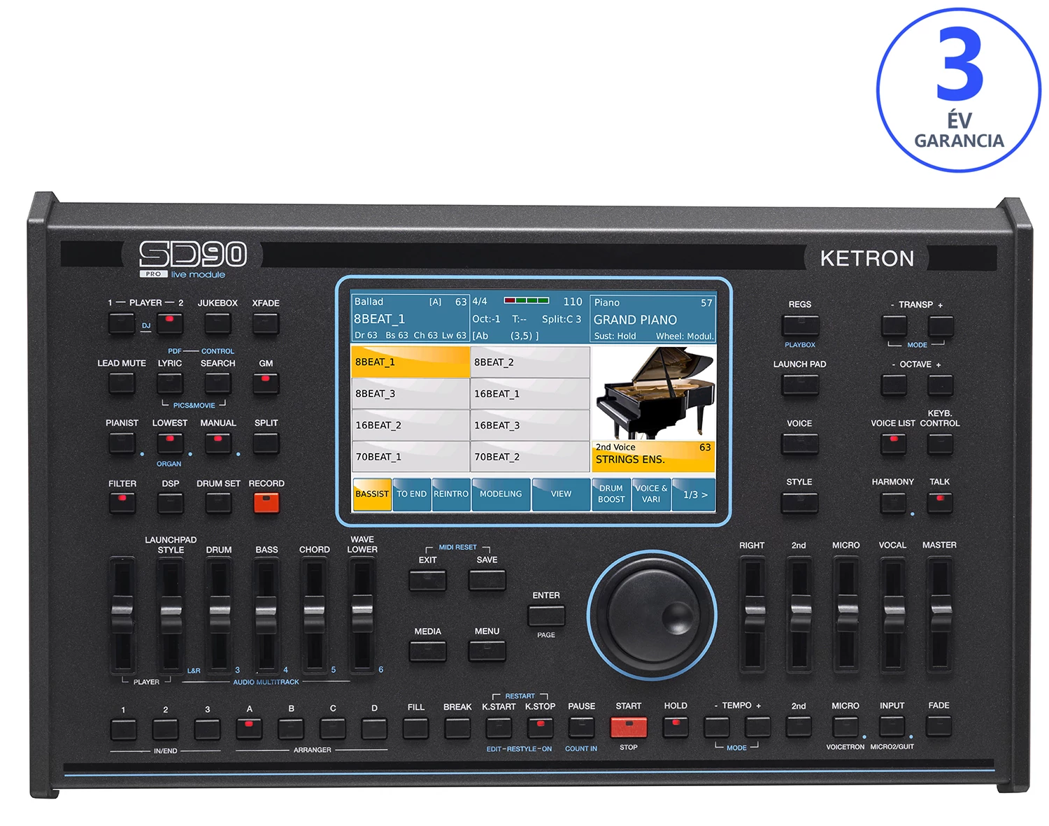 - Opcionális kiegészítők: 6 vagy 13 lábkapcsoló, Hangerőpedál, Sustain pedál, Start/Stop pedál, Midi pedálsor, HD, SSD, Keménytok, Tok.