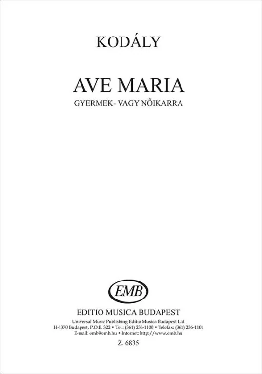 Kodály Zoltán - Ave Maria (gyermek- vagy nőikarra)