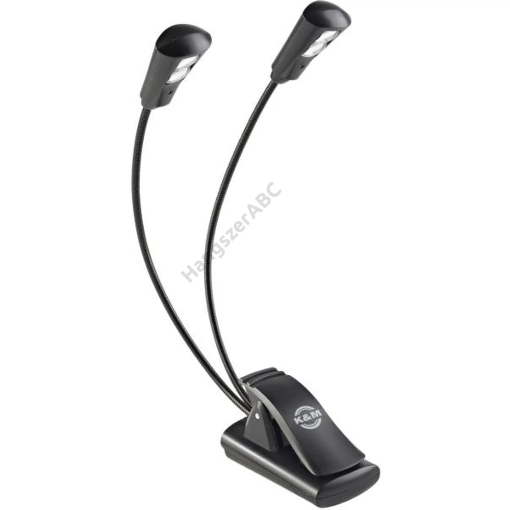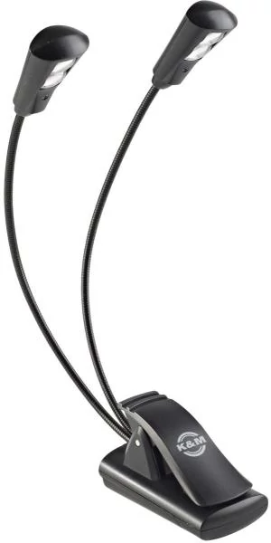 König & Meyer kottalámpa - Double2 LED Flex Light – 2x2 LED-es, csíptethető, 3 db AAA elemmel vagy 110-240 V AC adaprel táplálható, flexibilis nyakkal, fekete