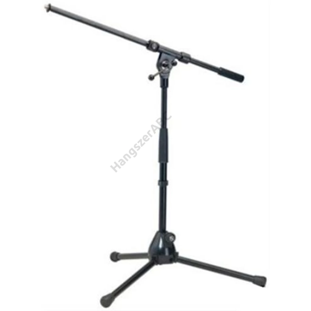 König & Meyer mikrofonállvány lábdobhoz, állítható oszloppal, gémmel, fekete