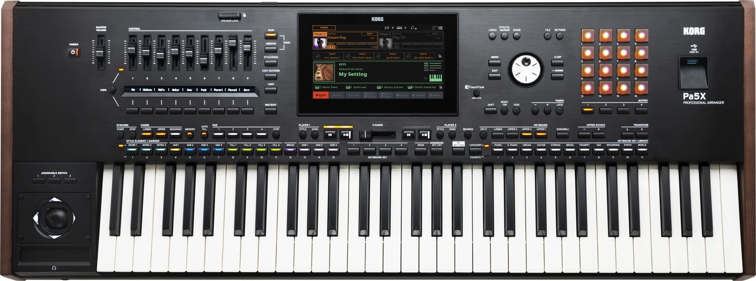A Pa5X több ezer inspiráló hangszínt és több száz friss stílust tartalmaz, amelyek mindegyike azonnal elérhető az alkotásra ösztönző munkafolyamat útján. A hozzárendelhető pad mátrix és keverő modullal, többszínű LED gombokkal és nagyméretű, dönthető érintőképernyővel felszerelt, teljesen új előlap garantálja, hogy mindig kézben tarthasd a zenélés élményét. A Pa5X az élő előadást szolgáló hangszerként és hatékony, kreatív stúdióeszközként egyaránt kiválóan használható, és lehetővé teszi, hogy megtaláld az ideális hangzást, bármerre is vigyen a zenéd.