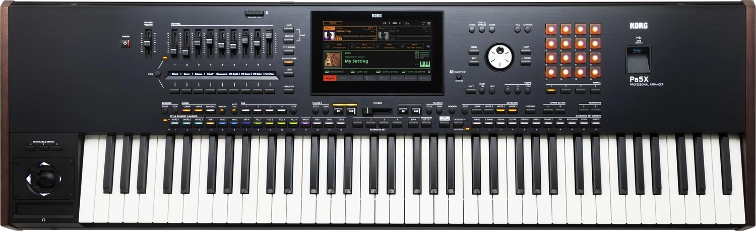 A Pa5X több ezer inspiráló hangszínt és több száz friss stílust tartalmaz, amelyek mindegyike azonnal elérhető az alkotásra ösztönző munkafolyamat útján. A hozzárendelhető pad mátrix és keverő modullal, többszínű LED gombokkal és nagyméretű, dönthető érintőképernyővel felszerelt, teljesen új előlap garantálja, hogy mindig kézben tarthasd a zenélés élményét. A Pa5X az élő előadást szolgáló hangszerként és hatékony, kreatív stúdióeszközként egyaránt kiválóan használható, és lehetővé teszi, hogy megtaláld az ideális hangzást, bármerre is vigyen a zenéd.
