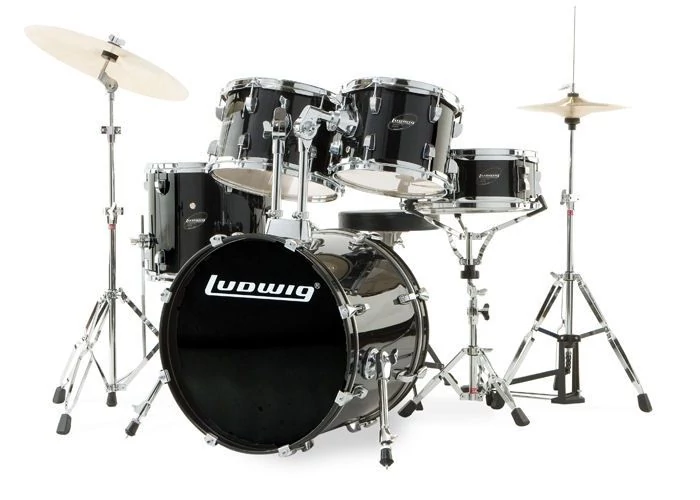 Ludwig Accent Fuse akusztikus dobszett, állványzattal, cintányérokkal, dobszékkel.